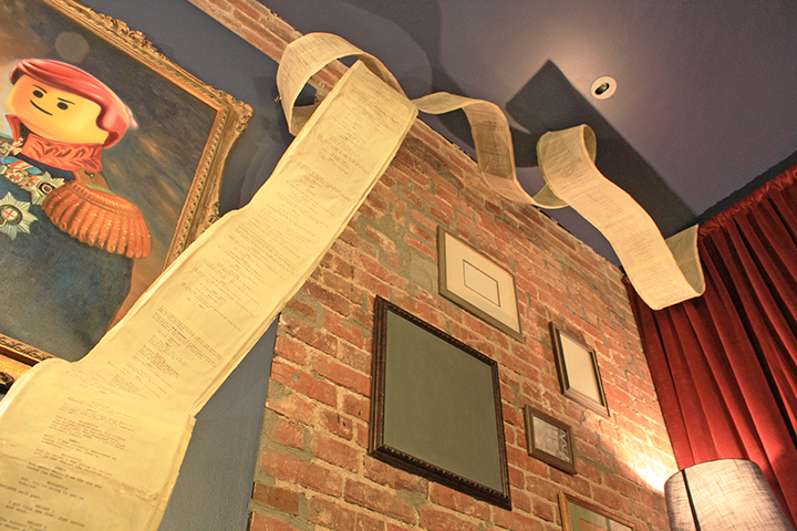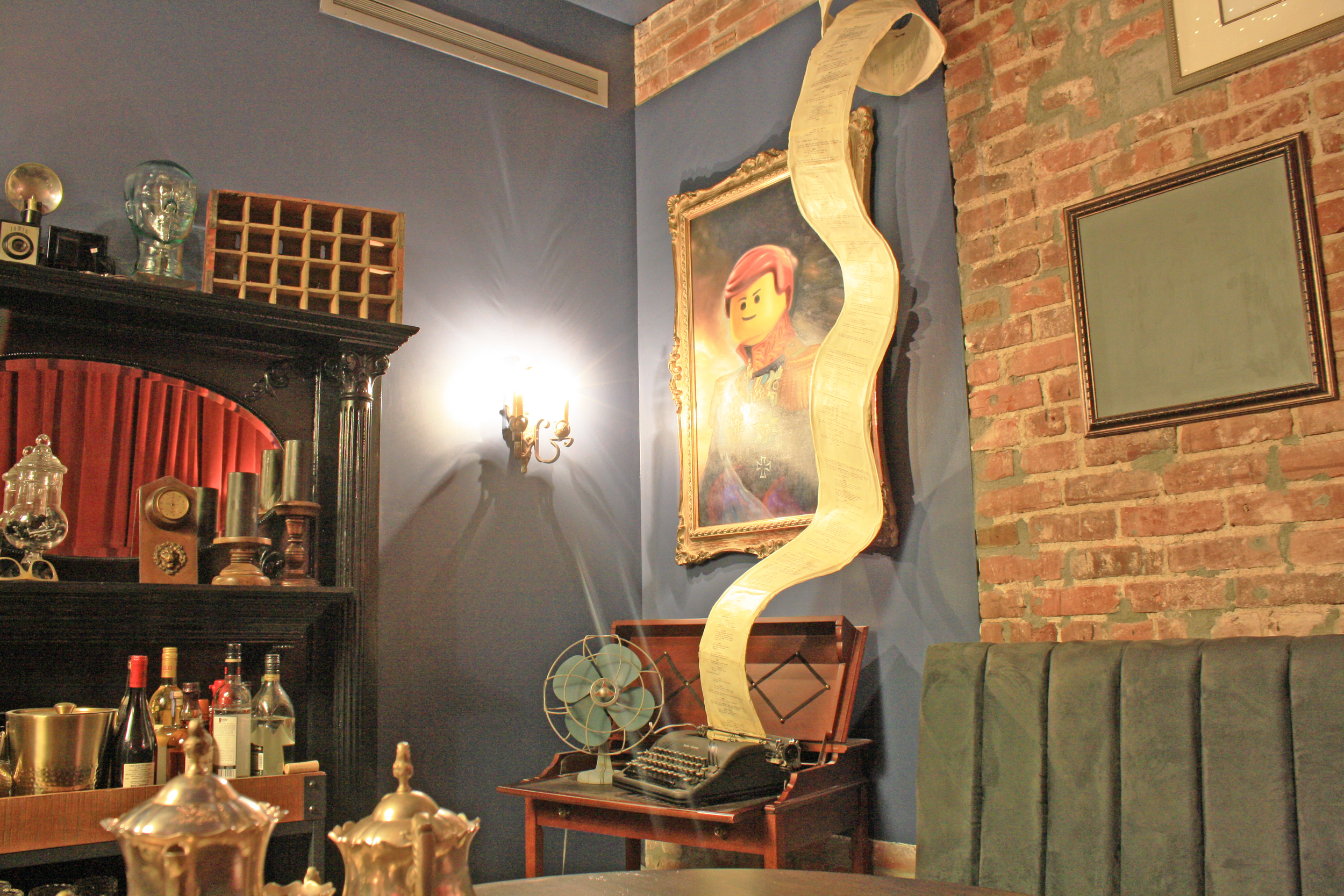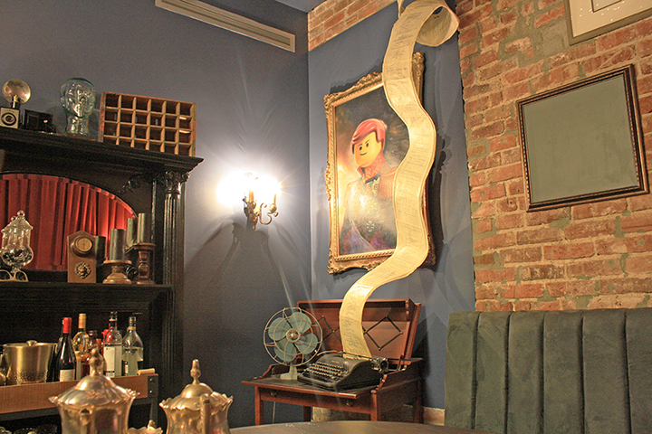 This commission was an enjoyable one, though it required a certain acceptance of unconventional entry points. There are two ways to access the piece. One is through a concealed bookcase, complete with the expected book-pull to enter. The other is via a small doorway behind a shelf in the staff kitchen, which leads through a fireplace on the other side.