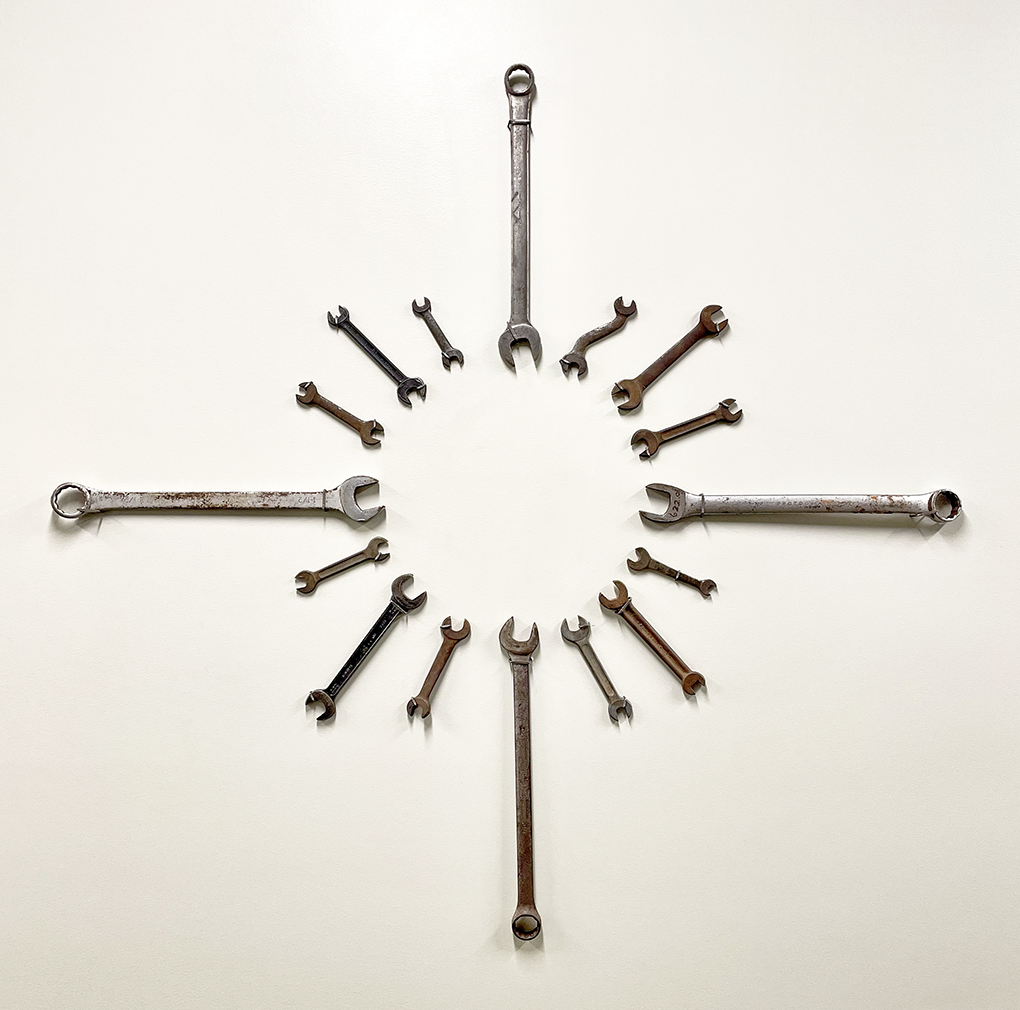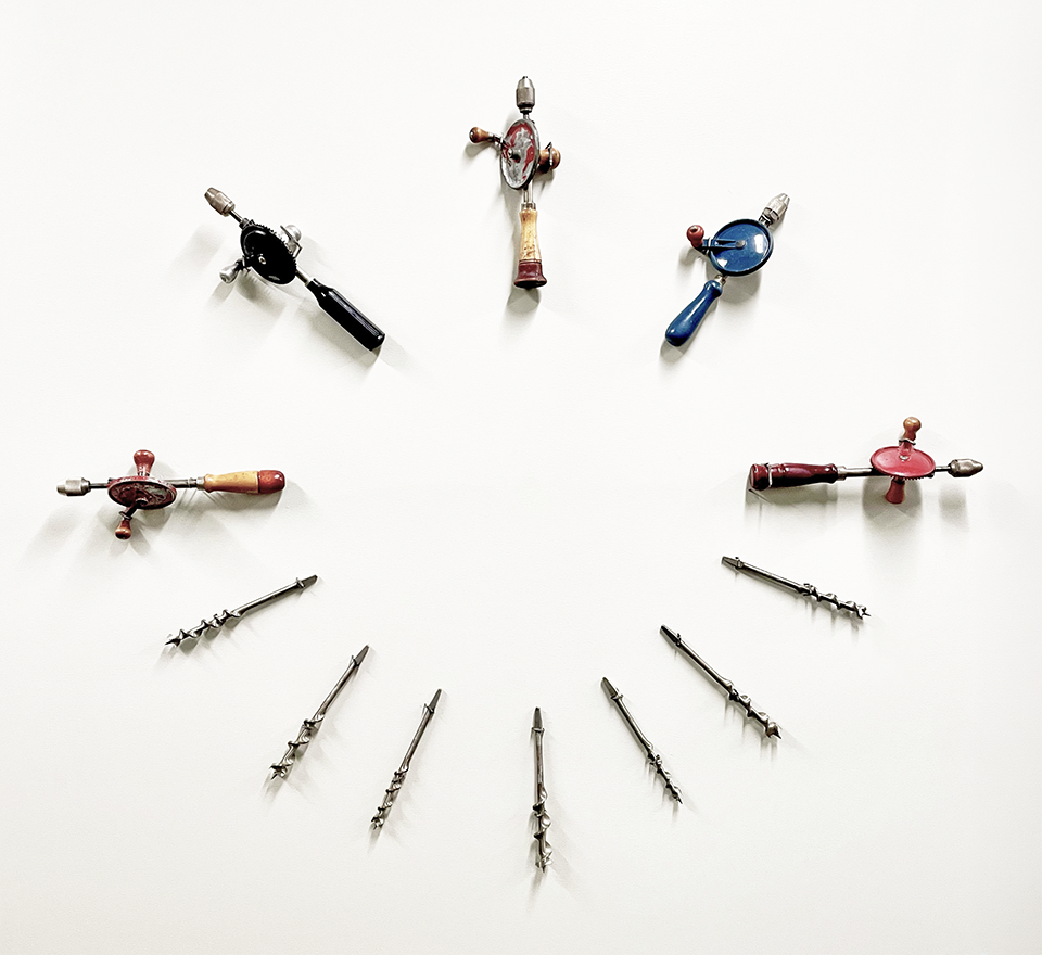 I Designed 10 Original artworks for the Carpenter & Millwright Local 1510 Training Center, the main sculpture is freestanding in the lobby and embodies the Union’s pillars of Brotherhood, History, and Knowledge. Rising from a steel base, vintage Carpenters & Millwrights manual anchors the piece. Its pages ascending in a dynamic spiral of layered trade texts and training guides spanning generations. The sculpture reflects the structure of the Brotherhood itself: a strong foundation established in 1881, steadily lifting each apprentice, journeyman, and tradesman who contributes to its legacy.